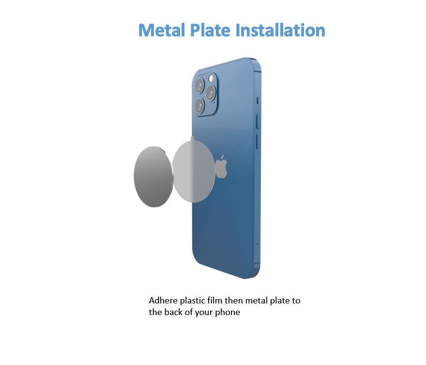 - Stick the protective film then metal plate to the outside of your device/case or place it in between your device and its case (for maximum magnetic hold, place the metal plate to the outside of your device).
