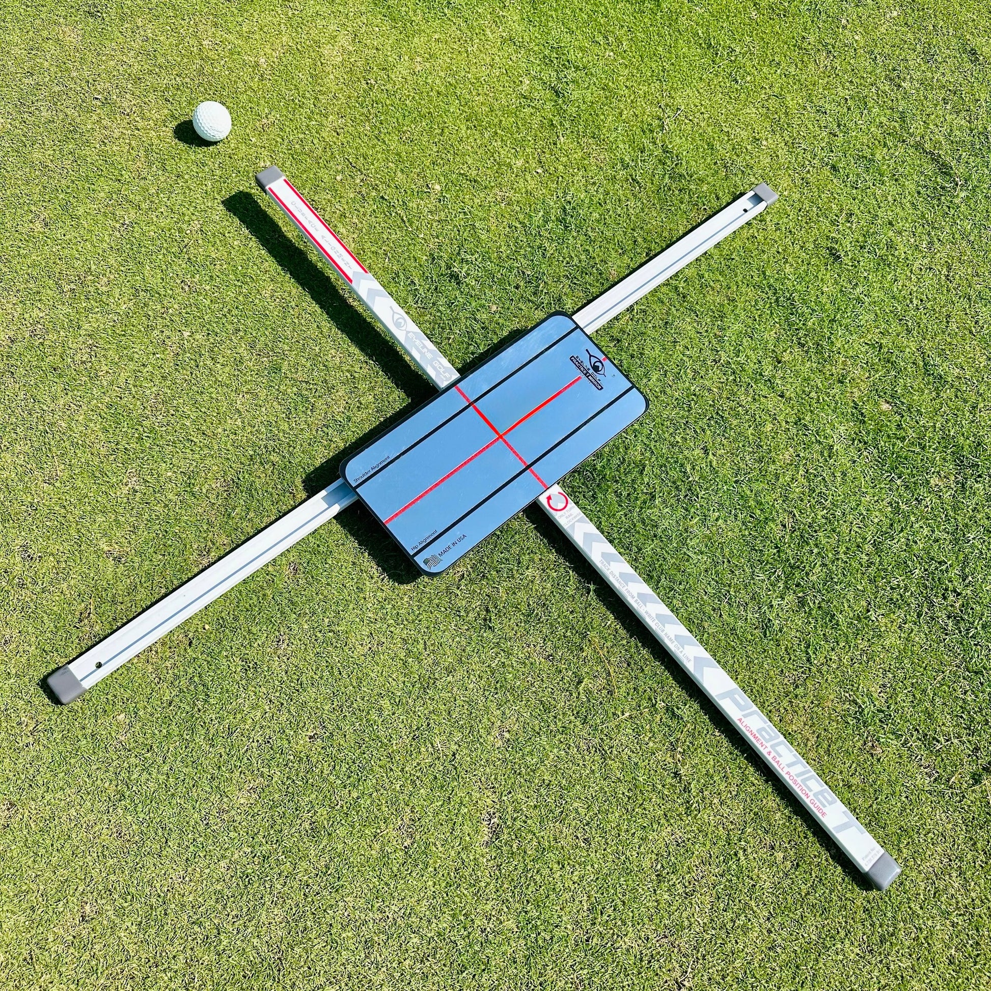 The EyeLine Golf Practice T with Mirror is the perfect practice tool for setup. The sliding rails keep your feet aimed at the target and allow you to check your ball position. The mirror slides on the top rail and allows you to see if your shoulders are square and if your eyes, head and hips are properly positioned. Folds to fit in your bag.