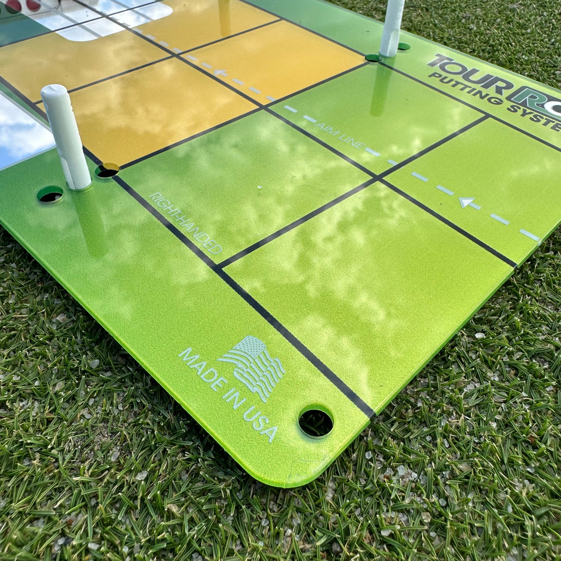 The Tour Roll is a putting stroke template that helps you build a consistent, repeatable stroke. It trains stroke path, face angle, and tempo while giving instant feedback on setup. Two built-in mirrors show you whether your eyes are over the ball and if your shoulders are square.